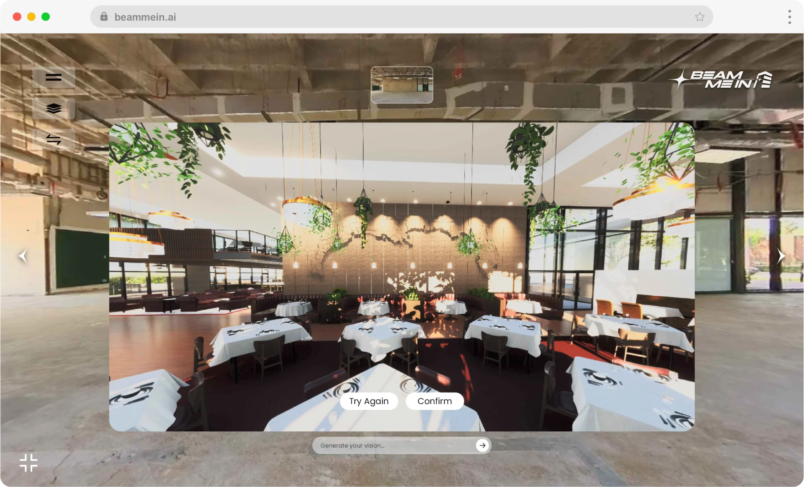 Turn any panoramic image into a fully-styled space in seconds. Beam Me In lets you showcase a space as-is or reimagine it as a vibrant café, office, and more—no physical changes needed.